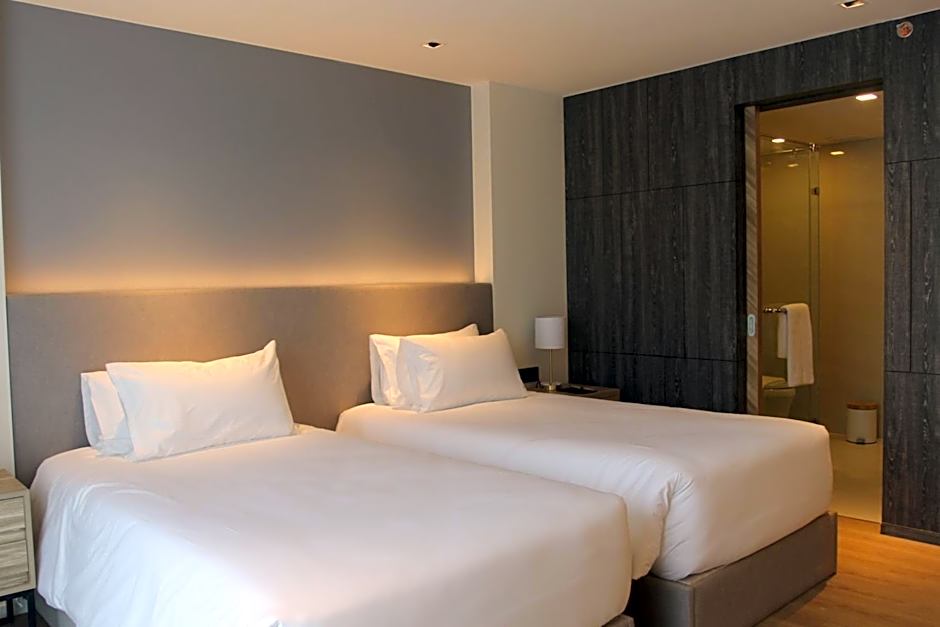 The spacious twin/double room offers air conditioning, soundproof walls, a balcony with garden views as well as a private bathroom boasting a walk-in shower.